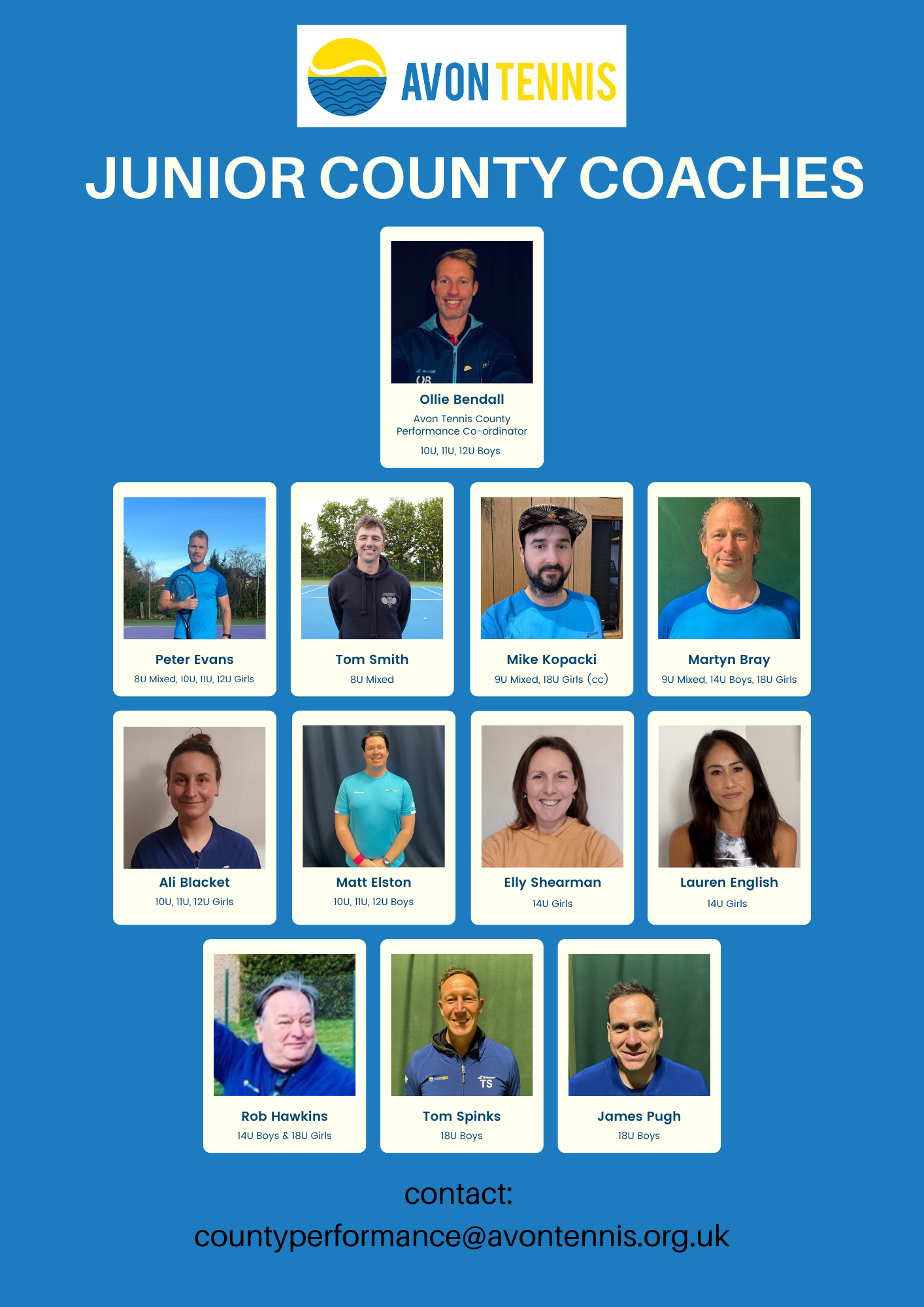 All Avon Tennis age group captains are LTA Accredited and selected for their ability to bring out the best in every player.